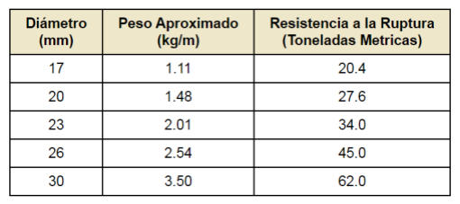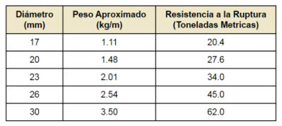 Tabla de Resistencias a la tension y Pesos (milimetros)