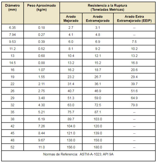 Tabla de Resistencias a la tension y Pesos (milimetros)
