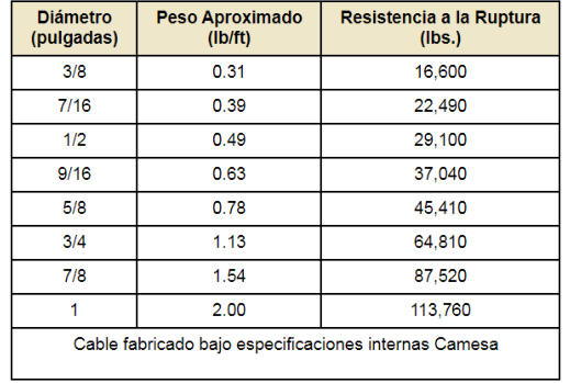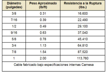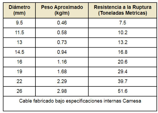 Tabla de Resistencias a la tension y Pesos (milimetros)