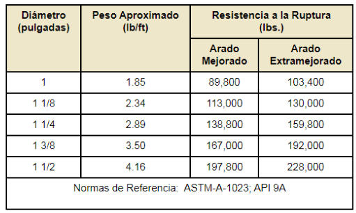 Tabla de Resistencias a la tension y Pesos (pulgadas)