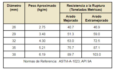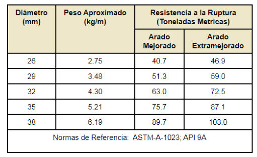 Tabla de Resistencias a la tension y Pesos (milimetros)