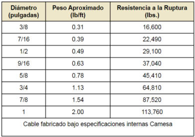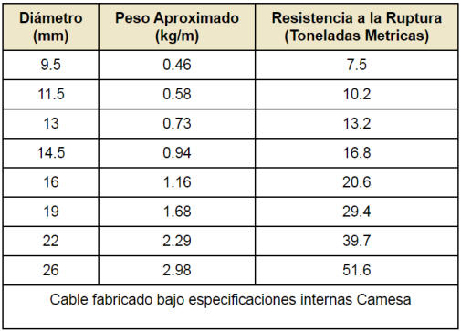 Tabla de Resistencias a la tension y Pesos (milimetros)