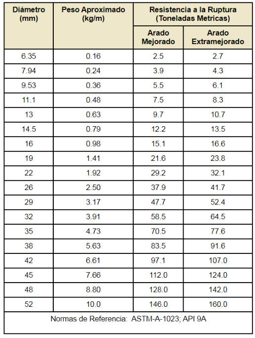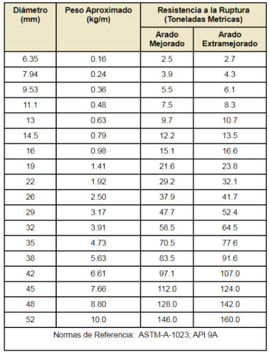 Tabla de Resistencias a la tension y Pesos (milimetros)