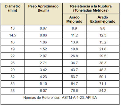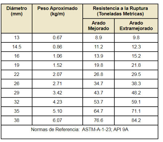 Tabla de Resistencias a la tension y Pesos (milimetros)