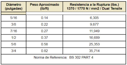 Tabla de Resistencias a la tension y Pesos (pulgadas)