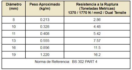Tabla de Resistencias a la tension y Pesos (milimetros)