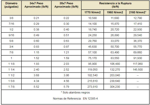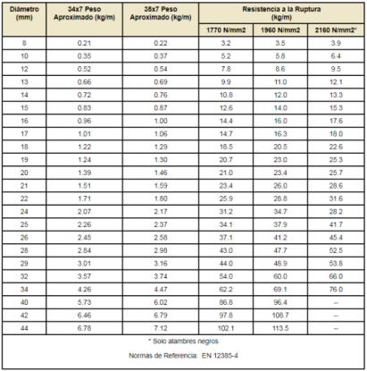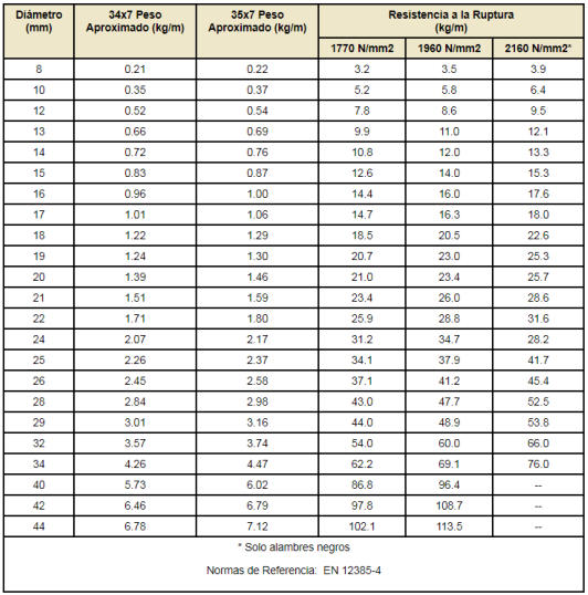 Tabla de Resistencias a la tension y Pesos (milimetros)