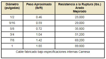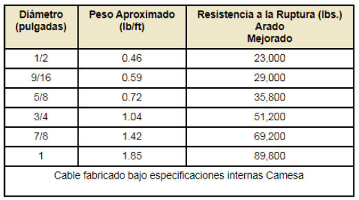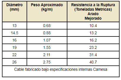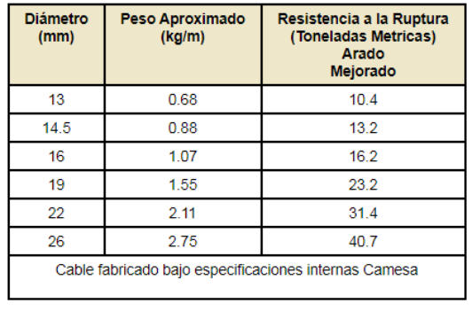 Tabla de Resistencias a la tension y Pesos (milimetros)