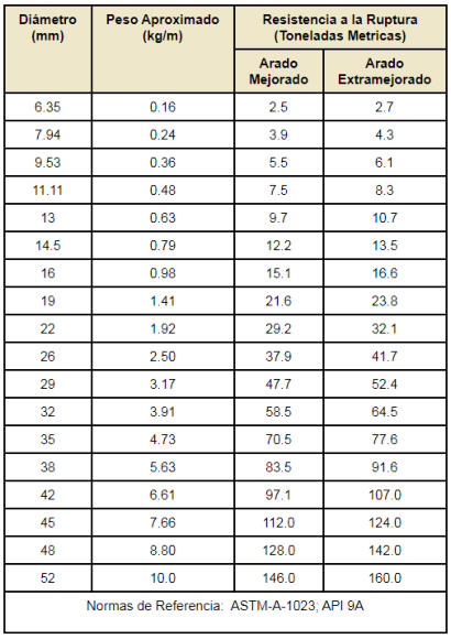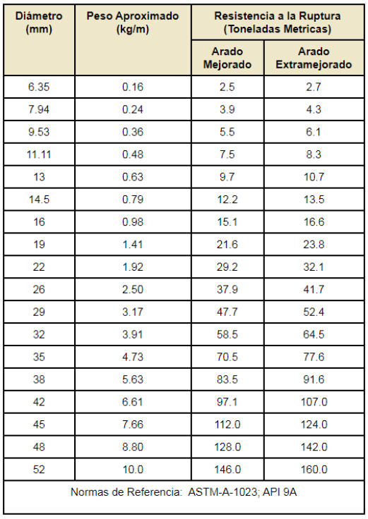 Tabla de Resistencias a la tension y Pesos (milimetros)
