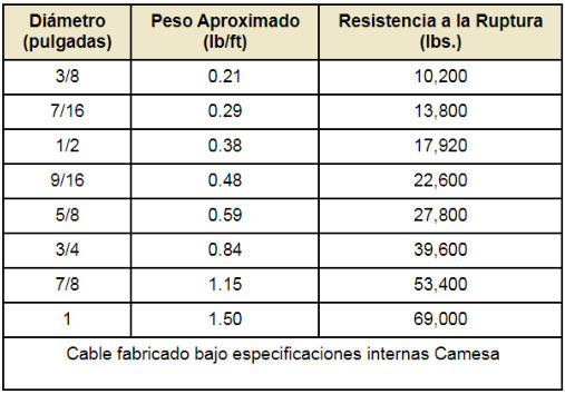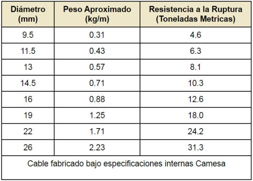 Tabla de Resistencias a la tension y Pesos (milimetros)
