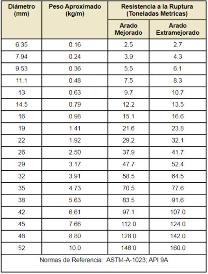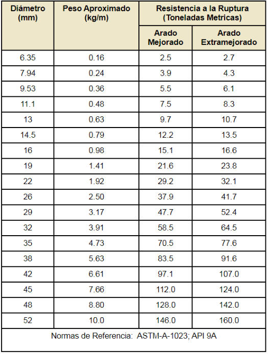 Tabla de Resistencias a la tension y Pesos (milimetros)